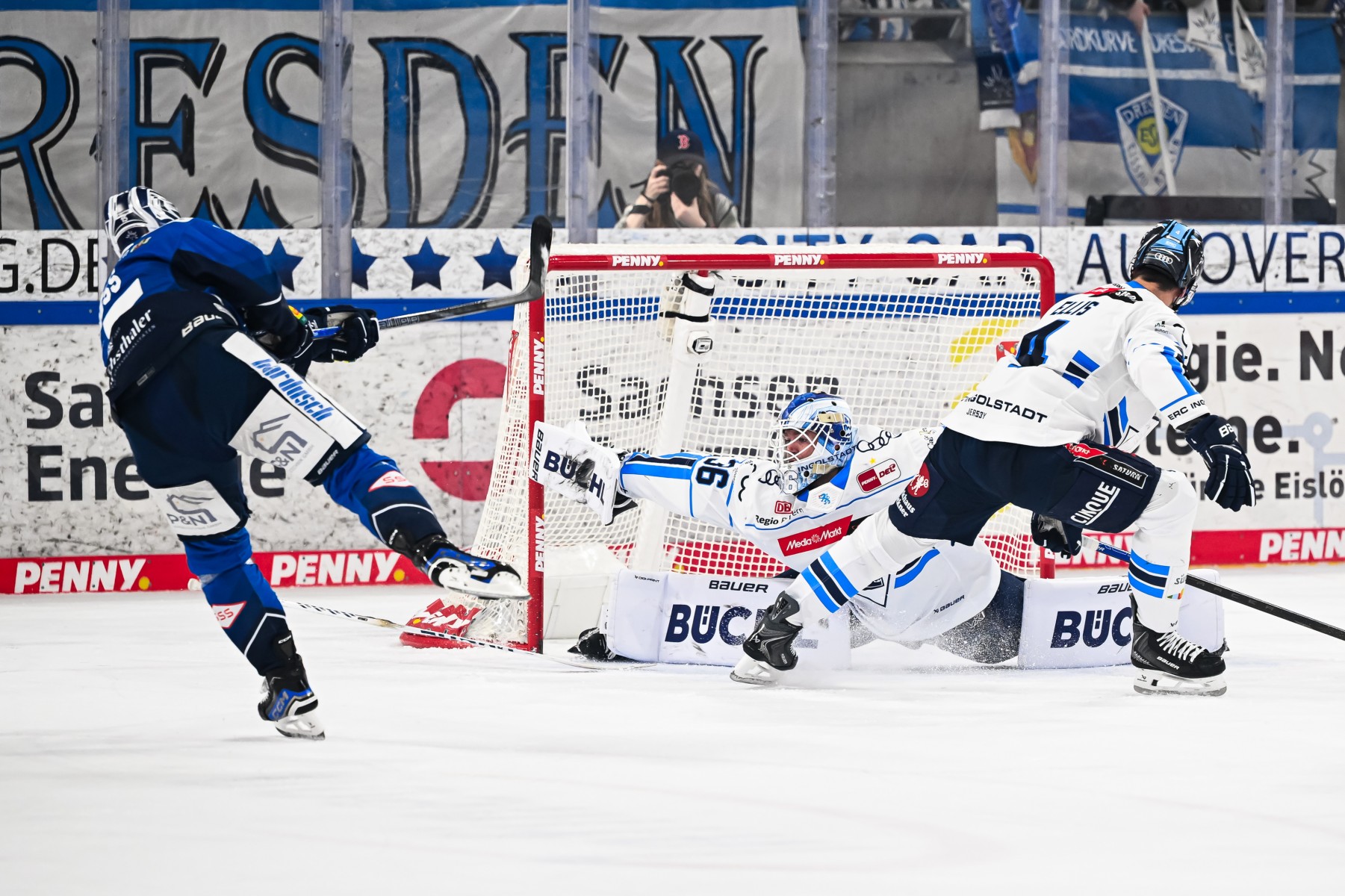 Keine drei Minuten waren im Schlussabschnitt gespielt, da jubelten die 800 mitgereisten Panther-Fans über den vermeintlichen Ausgleich. Doch nach Videobeweis fand das Tor wegen Torraumabseits keine Anerkennung. In einem Powerplay der Sachsen hatte der ERC bei einem Lattentreffer Glück. Selbst konnten sie das Gehäuse der hausherren aber nicht mehr ernsthaft in Gefahr bringen. Erst mit gezogenem Torhüter wurde es nochmal brenzlig, aber mit Glück und Geschick konnte Dresdens Goalie Yannick Schwendener seinen Kasten sauber halten.