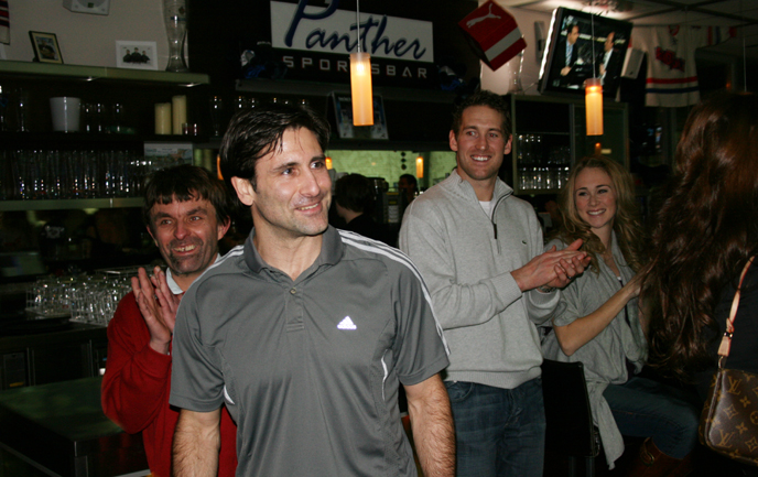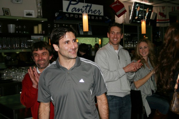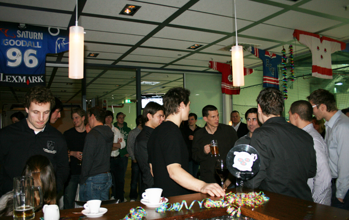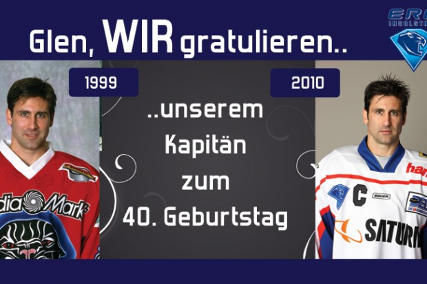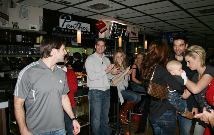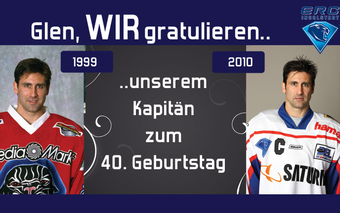 ERC-Kapitän Glen Goodall feiert heute seinen 40. Geburtstag. Seine Frau Jennifer hatte sich etwas ganz Besonderes einfallen lassen und am gestrigen Donnerstag eine Überraschungsparty für Glen in der Sportsbar organisiert. Die ganze Mannschaft, Freunde und alte Weggefährten gratulierten unserer Nummer 96 zu seinem runden Geburtstag.