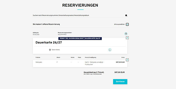 Da parallel zum Dauerkartenverkauf für die Saison 2026/27 die Playoff-Tickets bestehender Dauerkartenbesitzer in den Onlineshop eingefügt werden, kann es sein, dass die Reservierung der Dauerkarte 26/27 zeitweise nur im Dauerkartenshop sichtbar ist.